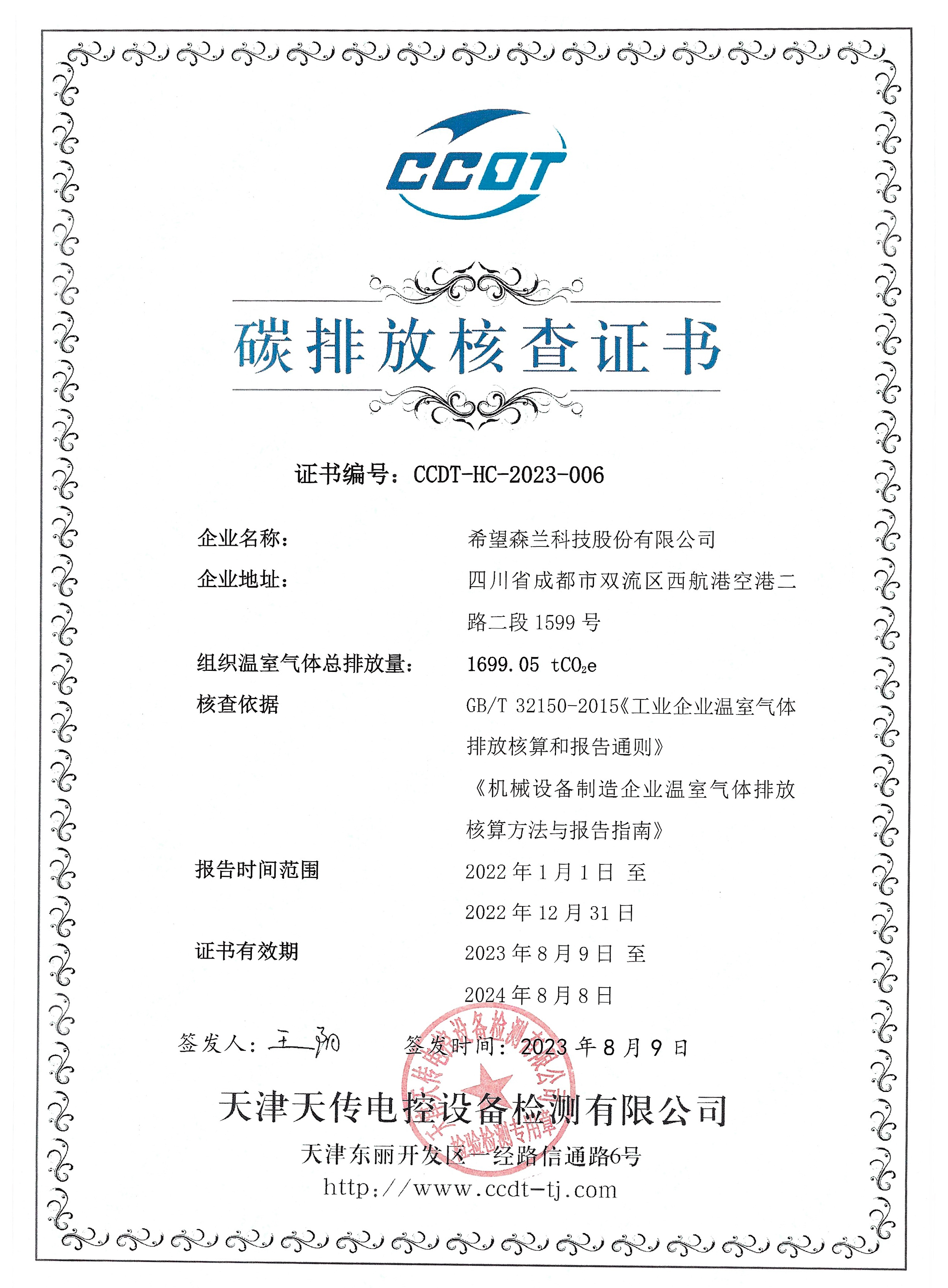 碳排放核查证书