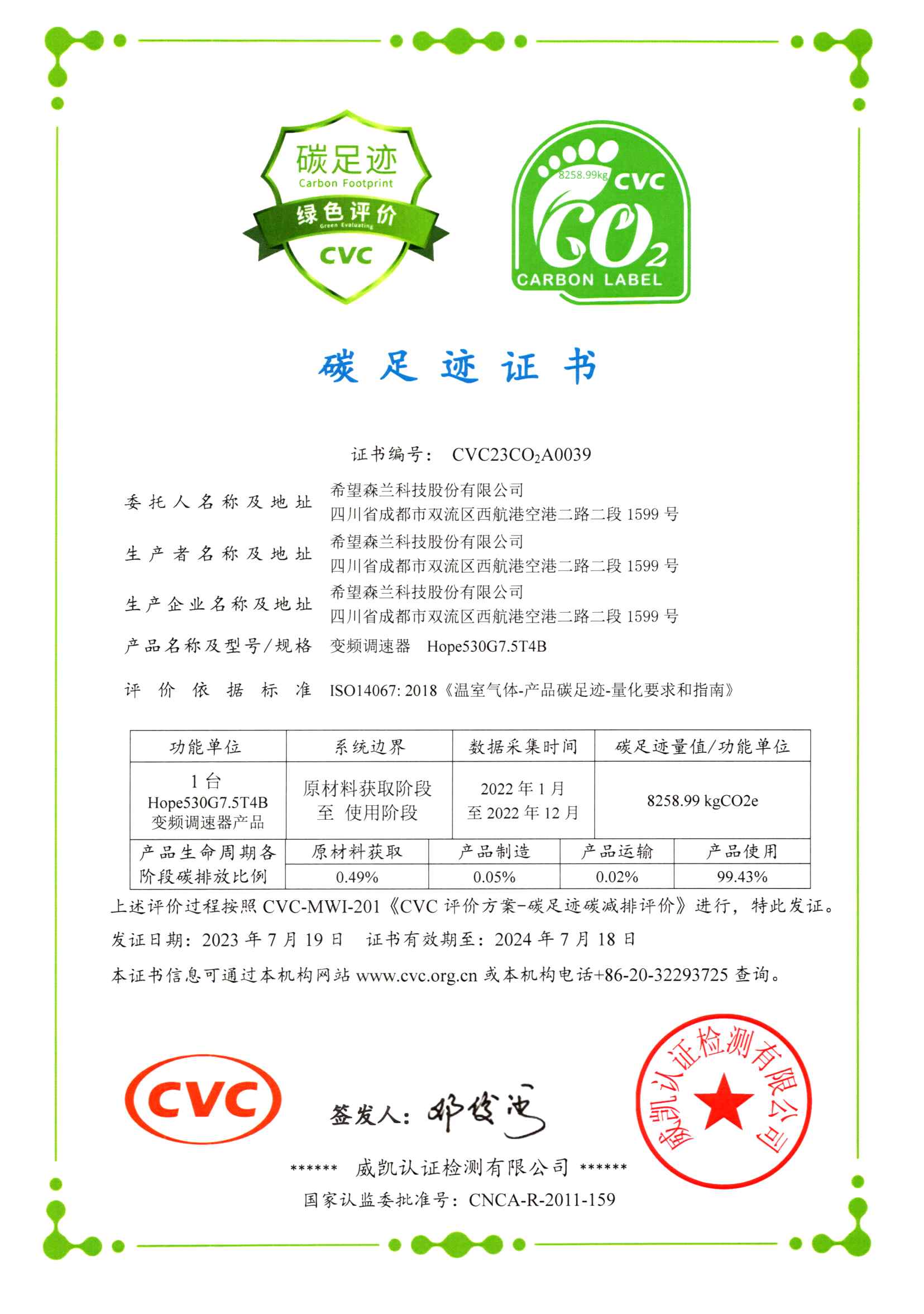 碳足迹证书