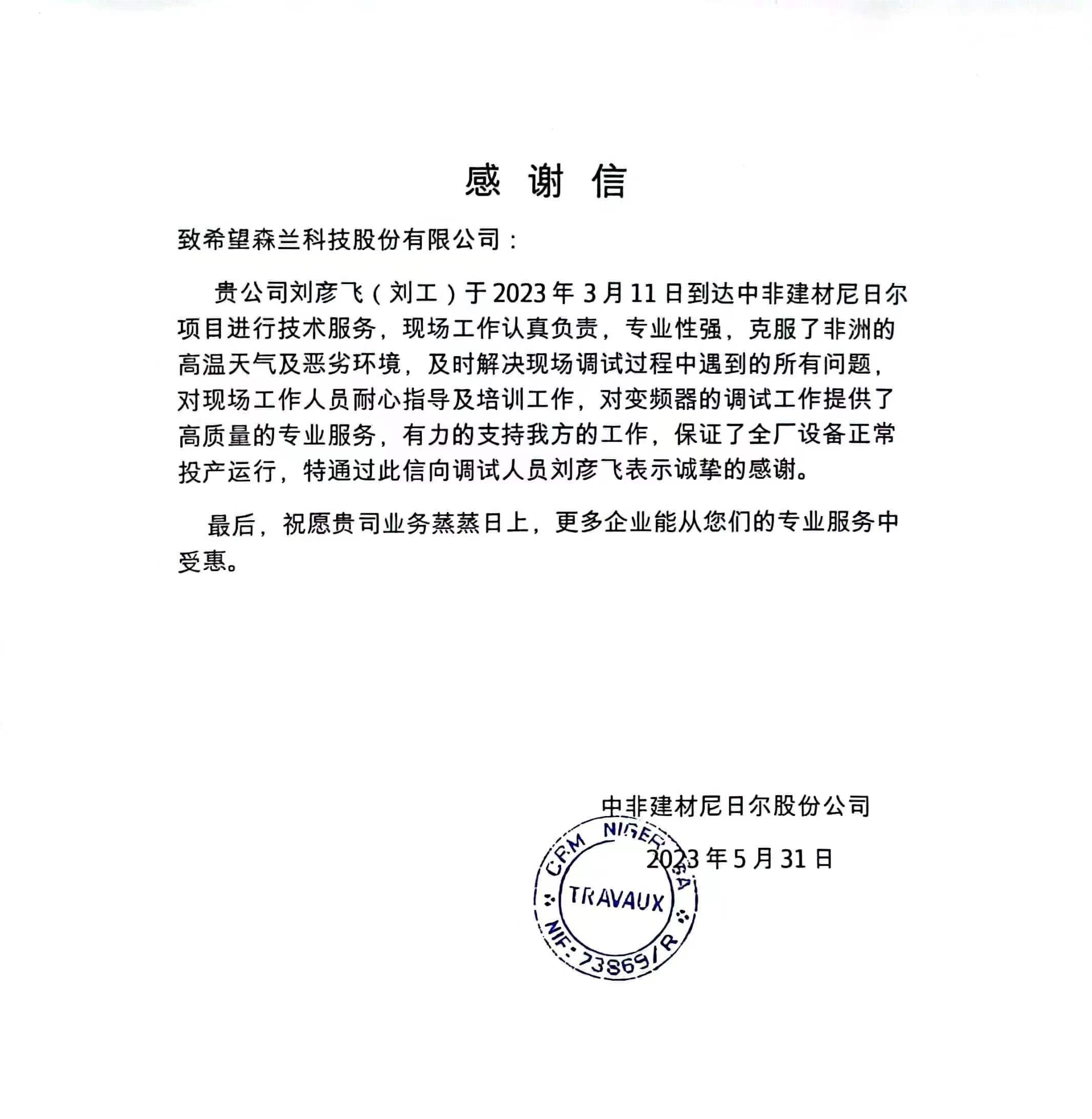 携手中建材,远征尼日尔!