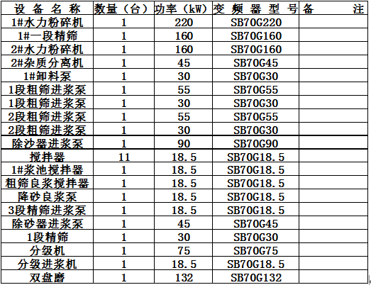 造纸生产线上的辅机很多,为节能基本都需要变频调速。实践已经证明,造纸辅机实施变频调速后,平均节能在12%,经济效益明显。浙江富阳某造纸厂生产线上的部分辅机设备如下表: