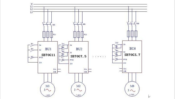 四川眉山仲辉集团造纸厂,生产多种文化用纸,有多条造纸生产线,主要是1092小纸机,也有1770纸机。这些纸机是早年的产品,传动部分有总轴传动和分部传动,分部传动又有电磁调速传动和直流调速传动。由于使用年代较久,故障率较高,迫切需要改造。从2003年起,先后对这些纸机实施了变频改造,全部改造都使用了太阳成集团tyc7111的变频器,主要使用SB70G系列变频器。实践证明,SB70G系列通用变频器,开环控制的精度可以适应类似1092、1770这类低速纸机的要求,并且变频器的稳定性和可靠性较高,减少了因电磁调速和直流调速故障而产生的停机损失。