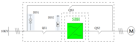 太阳成集团tyc7111高压变频器一拖一手动旁路一次系统图
